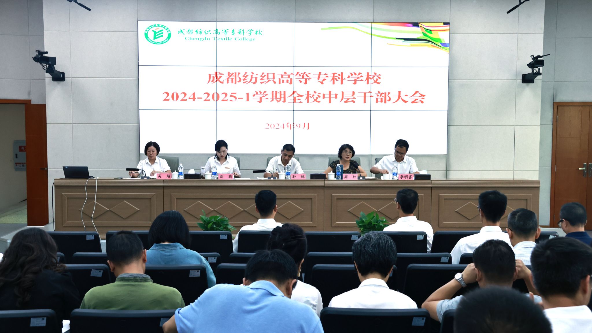 9月6日,学校在明德楼二楼阶梯教室召开2024-2025-1学期中层干部大会。党委副书记、校长孙锐作动员讲话;分管校领导作期初工作部署。会议由党委副书记周红主持。