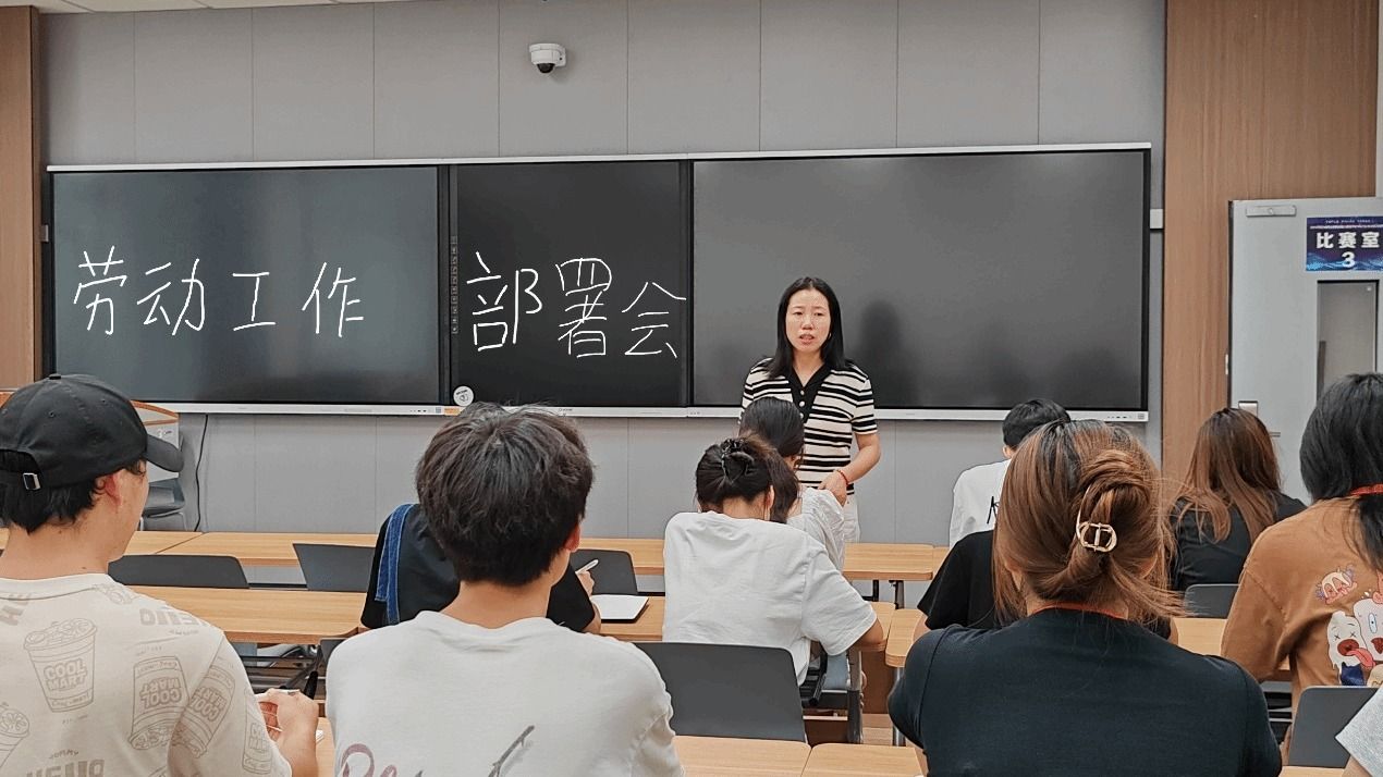 9月11日上午,数管学院召开劳动教育工作会,指导老师曾霜霜就学院清洁、种植劳动做工作部署与安排,拉开新学期劳动教育的帷幕,2023级各班劳动委员、学院劳动教育部干部参加会议。