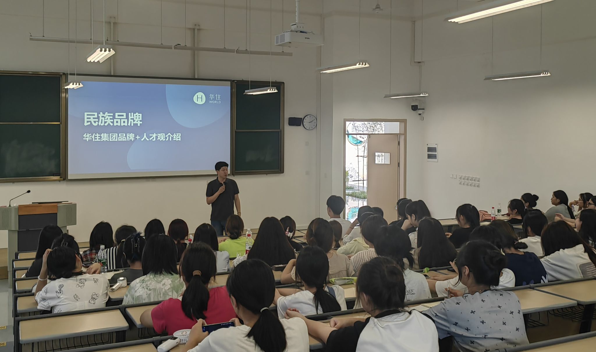 刘浩老师以“民族品牌——华住集团品牌和人才观”为题,介绍了当前酒店行业的发展趋势和华住酒店集团的发展历程,阐述了华住集团旗下的31个品牌特色,以及华住所秉持的企业文化,为同学们描绘出一幅幅绚丽多彩的酒店世界蓝图。
