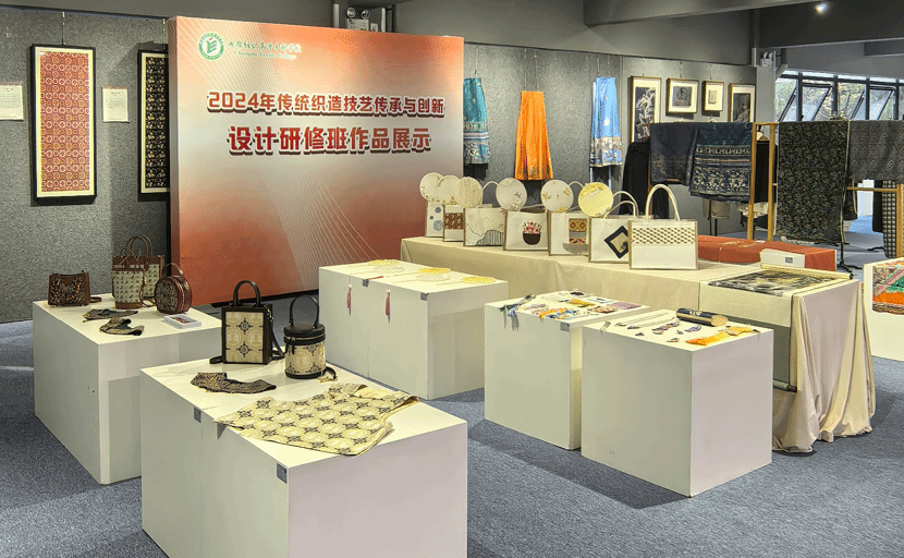 本次培训由文化和旅游部主办,bwin手机客户端纺织工程学院在四川省文化和旅游厅指导下承办。培训为期30天;邀请中国织锦工艺大师、省级蜀锦织造技艺大师,以及设计、工艺等相关领域的专家担任培训导师;培训内容涵盖织造产品设计方法、机织物织造技艺、织造非遗技艺的国际发展现状、传统缫丝技艺、现场参观调研、产品创新实践等多个模块。在导师们的悉心指导下,学员们结合课程内容与地域特色、民族特色,设计并制作出近百件蜀锦蜀绣的创意作品。