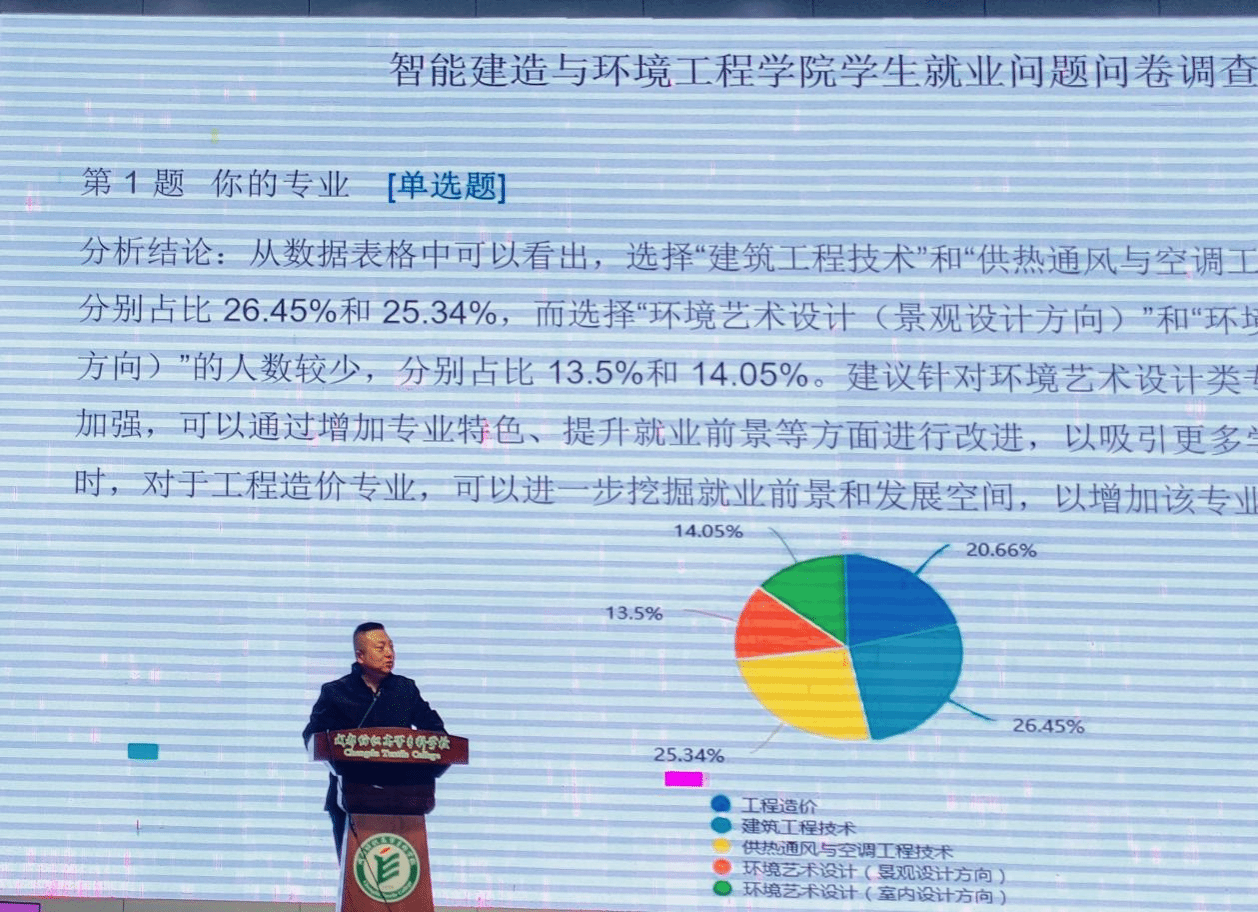 10月15日下午,建环学院在南苑双艺厅召开2025届毕业生就业动员大会。学创处副处长刁家志,建环学院院长秦朝昭、党总支副书记(主持工作)鲜金宏、各专业负责人、辅导员及2025届毕业生参会,会议由边川针主持。