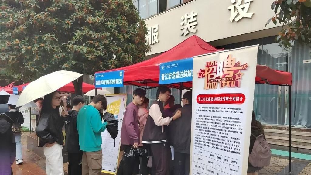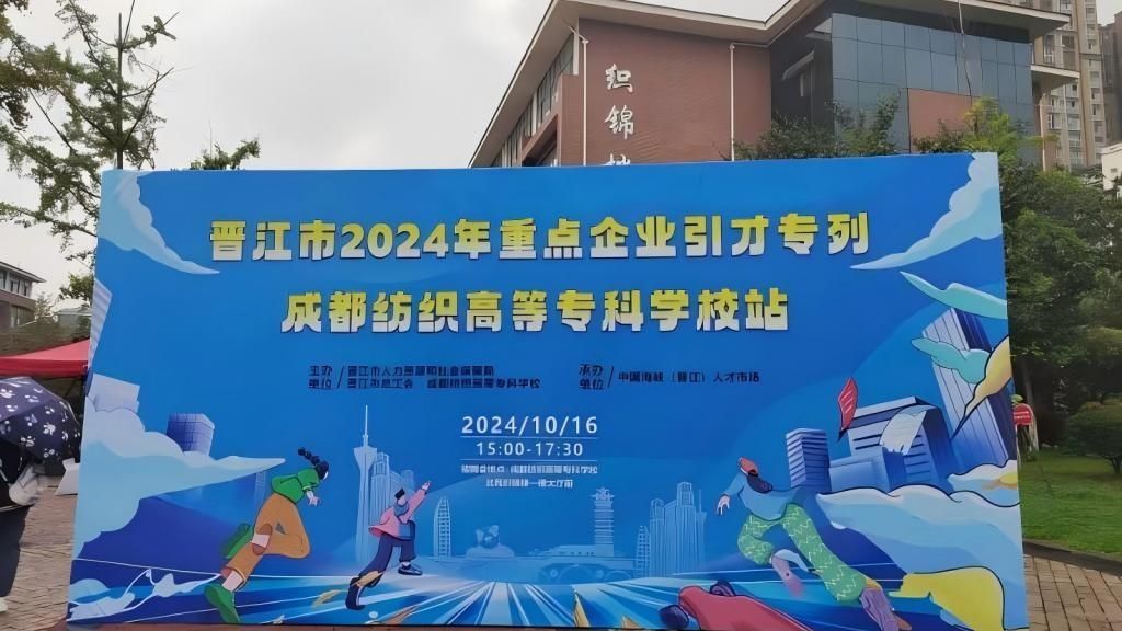 10月16日,福建省晋江市人力资源与保障局组织的“2024年福建省晋江市重点企业引才双选会”在学校犀浦校区举行,29家晋江市优质、重点企业到校招聘,提供岗位700余个,涉及纺织、服装、染整、皮具、材料、外贸、会计、物流、机械、电气、外语等专业。