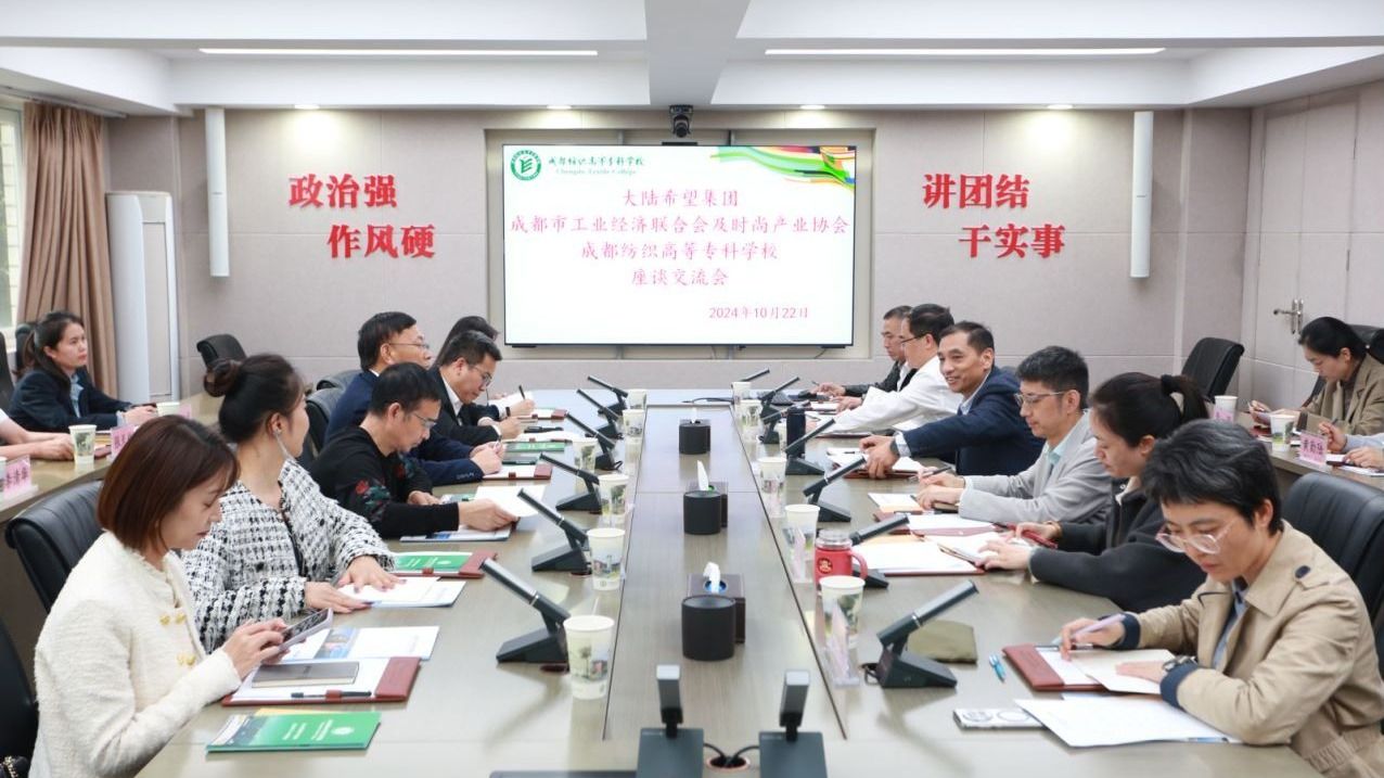 随后,双方在学校明德楼二楼会议室举行座谈会。孙锐对企业代表团的到来表示欢迎,并简要介绍了学校80余年的办学历史、经验和成果。他表示,在新的发展时期,学校将对接四川省轻纺食品产业,聚焦特种纺织材料、特种纺织面料、特种功能服装、特种纺织装备“四特”领域,围绕服务产业进行人才培养、科研平台打造、校企联合项目申报和师资培养。当前学校正在全力以赴创建职教本科,将进一步对接产业、服务产业,大力培养技术技能人才。学校希望与行业龙头企业建立更加紧密的合作关系,共同推动教育与产业的深度融合。