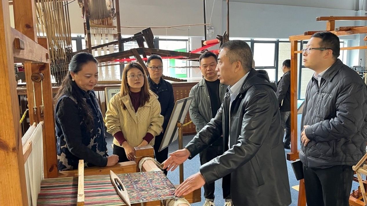 座谈会前,产教交流处处长童晓晖、创艺学院院长刘畅陪同岳惠玉一行参观了四川省织绣技艺非遗数字化保护与传承重点实验室,介绍了学校在蜀锦、蜀绣非遗传承开展的工作和目前取得的成绩。