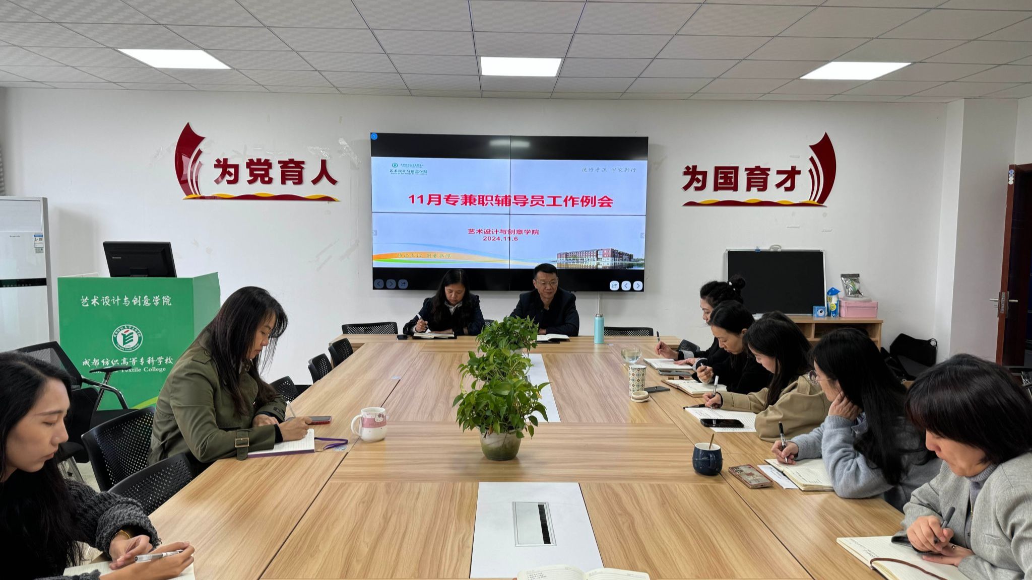 11月6日,创艺学院召开11月专兼职辅导员工作例会,安排布置近期重点工作。学院党总支书记王坤、副书记钟代琴、全体专兼职辅导员参会。