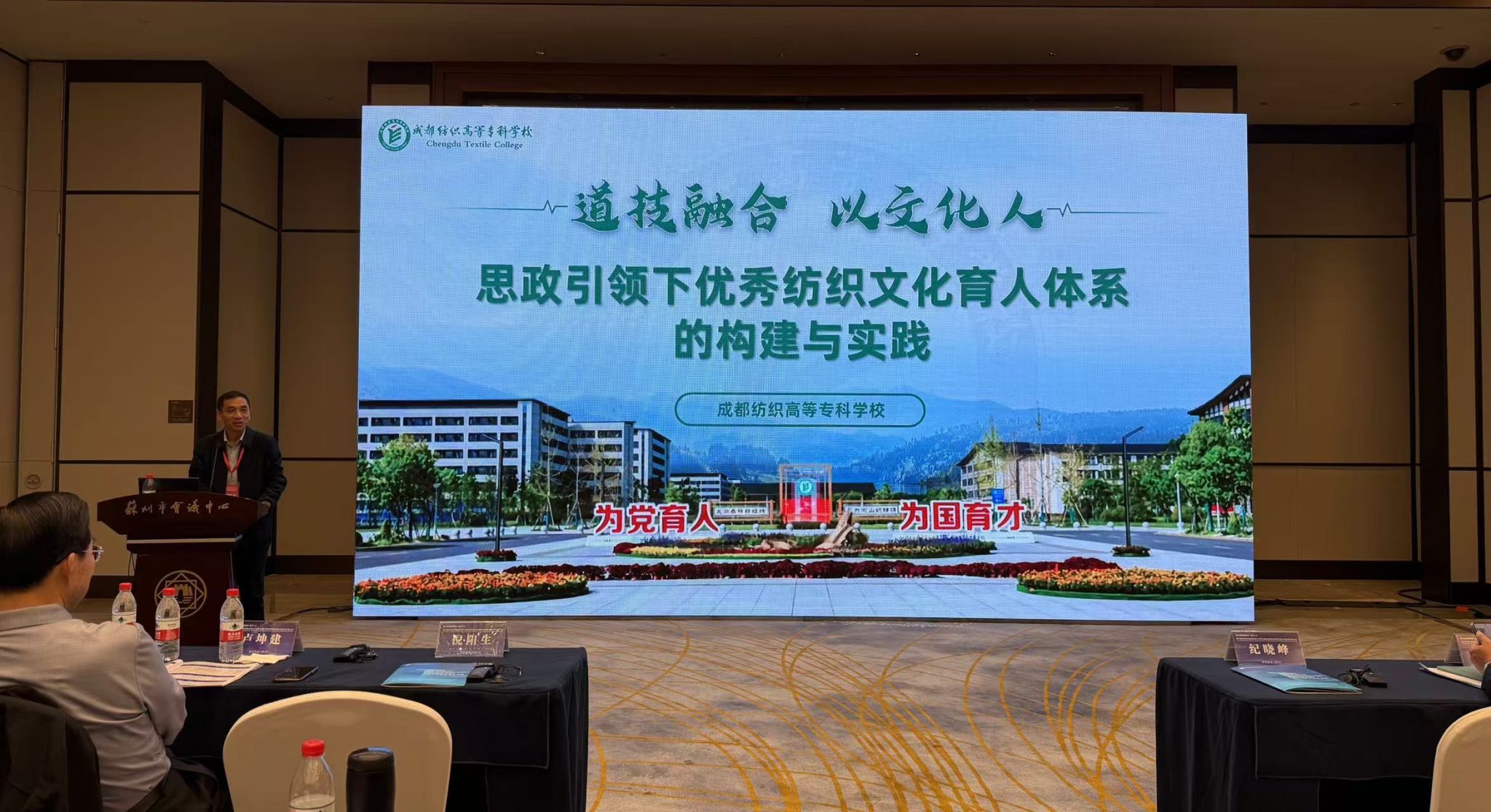 11月9日上午,在大会职业教育分会场,孙锐作《道技融合 以文化人——思政引领下优秀纺织文化育人体系的构建与实践》主旨报告,向在座的国内外纺织服装职业教育专家学者介绍学校“道技融合、以文化人”文化育人理念,通过案例分享成纺创新与特色办学举措,展示办学成果。他表示:职业院校深入实施凸显产业特色的中华优秀传统文化教育是培育和践行社会主义核心价值观的有效途径,学校将持续完善思政引领下的优秀纺织文化育人体系,落实立德树人根本任务。