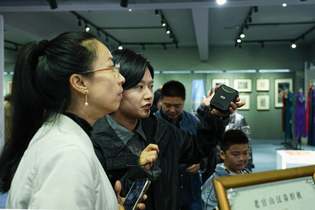 图3 校友严苑钟(服装工程131班)为校友袁佳琛(服本011班)讲解蜀锦织造技艺