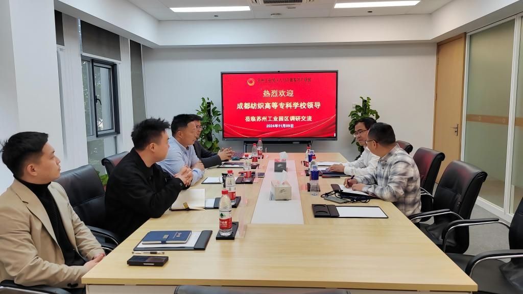 苏州工业园区人力资源服务产业园是苏州工业园区下属国有企业,通过与高校共建“苏州产业学院”,解决苏州工业园区企业对技术技能型人才的需求。苏州产业学院院长潘云向李明富一行详细介绍了“苏州产业学院”模式。苏州产业学院由高校、政府、企业三方构成,实行“共建、共管、共享”机制,实现高校把校园办到企业中去,办到苏州工业园区园区中去。李明富高度认可“苏州产业学院”模式,表示苏州产业学院模式与学校构建产业学院的模式是一致的,根本目的是为产业培养出更多高质量技术技能型人才,实现学生高质量充分就业。他强调,学校要进一步梳理能参与共建“苏州产业学院”的专业,细化方案,有组织地开展与苏州工业园区的合作。