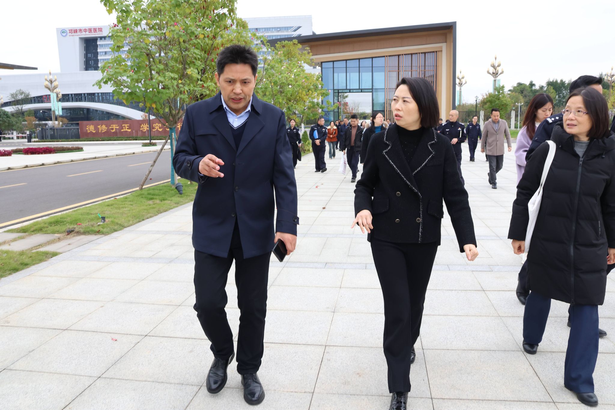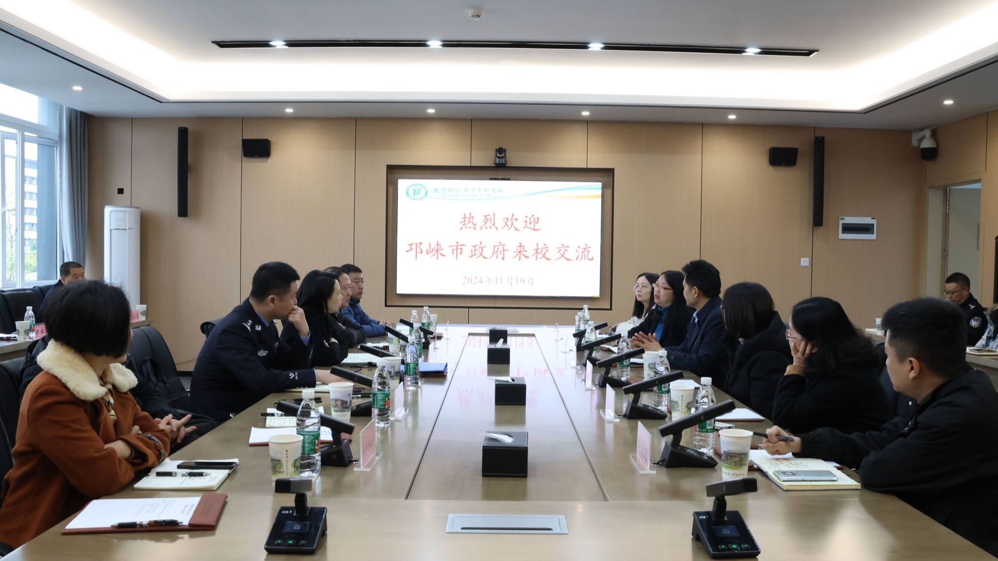 11月19日下午,邛崃市人民政府副市长牟莉带领市委政法委、市公安局、市综合执法局、市教育局等部门负责人来到bwin手机客户端邛崃产教园区调研,与副校长蒲冰远和保障处、学创处、宣传统战部、教务处、建设处等相关部门负责人、工作人员就校园安全工作进行深入交流。