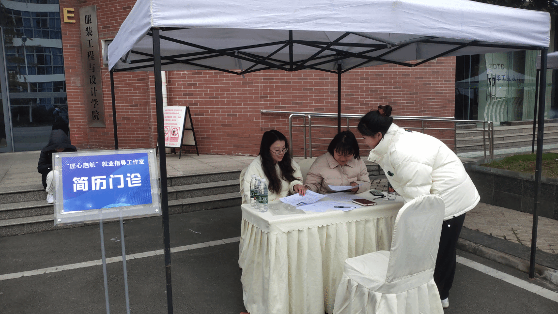 学院“匠心启航”就业指导工作室的成员们设立了简历门诊,现场为毕业生的简历进行一对一的指导和完善,帮助他们更好地展现个人优势和求职意向。