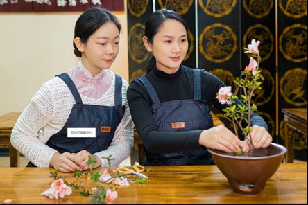 《缤纷花韵 生活花艺》课程秉持花艺点亮生活的理念,涵盖花艺基础知识、插花实践操作以及如何巧妙地将花艺艺术融入家居生活,教授学员通过花艺点缀生活空间,提升生活品质。《泡好一杯中国茶》课程倡导“茶为国饮”的理念,将中国茶道精神融入课程,以泡好一杯中国茶为目的,学习茶的历史、发展、分类、特点、泡茶的礼仪、方法、茶与健康等内容。两门课程内容丰富、实用性强,采用多种教学方法和手段,通过生动有趣的教学方式,帮助学生掌握专业知识和技能。