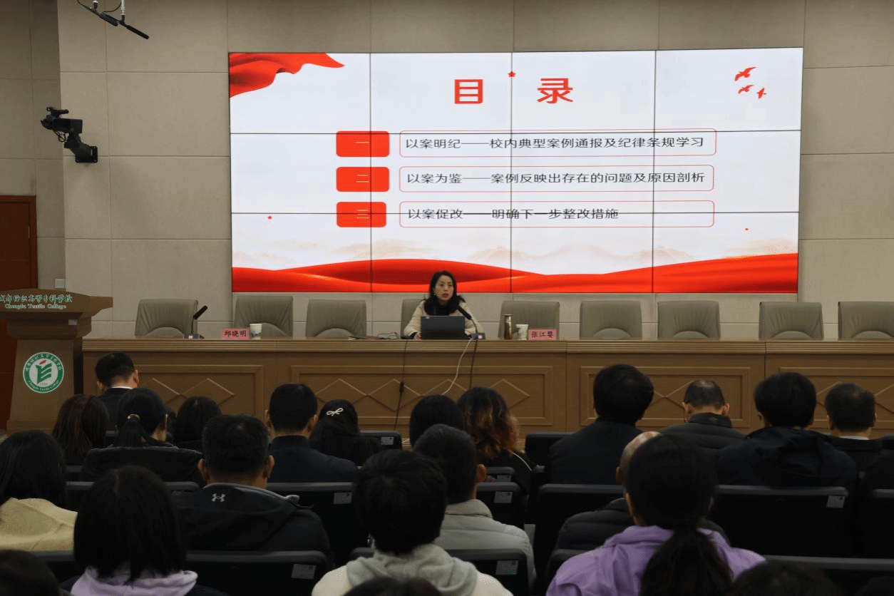 张江婴通报了学校2024年查处的2起典型案例,对案件涉及的纪律条规进行解读,对案例反映出的问题及原因进行了剖析,指出部分党员干部存在法纪意识淡薄、好人主义盛行、监督管理缺失的问题,并对下一步整改措施提出三点要求:一要提高思想站位,坚守初心使命;二要强化法纪意识,守住红线底线;三要形成监督合力,提升监督质效。