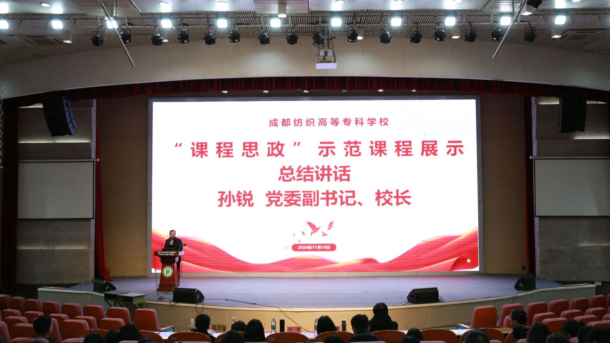 11月20日,学校开展“课程思政”示范课程展示活动。活动由教务与专业建设指导处、党委宣传(统战)部、马克思主义学院、课程思政教学研究中心、“名师思政教师”漆晓玲名师工作室共同举办,党委副书记、校长孙锐,党委副书记周红,党委常委、纪委书记张江婴,党委常委、副校长宋超、李明富出席活动。