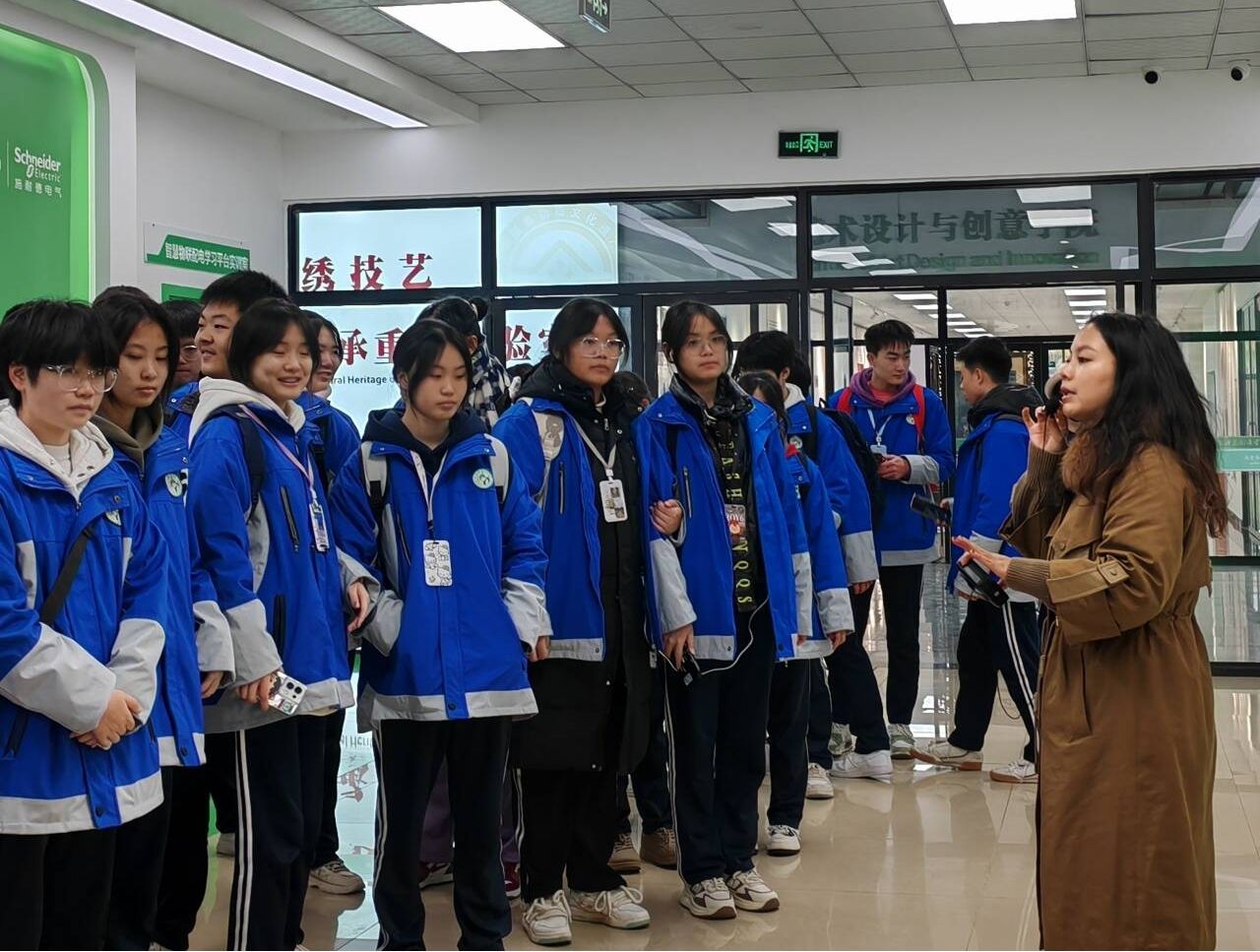 上午,简阳市实验中学的师生们在志愿者的带领下,沿嫘湖参观了北苑校区、织绣技艺非遗数字化保护与传承四川省文化和旅游厅重点实验室、法国施耐德电气绿色低碳技术应用中心和产教融合智慧服装实训基地。