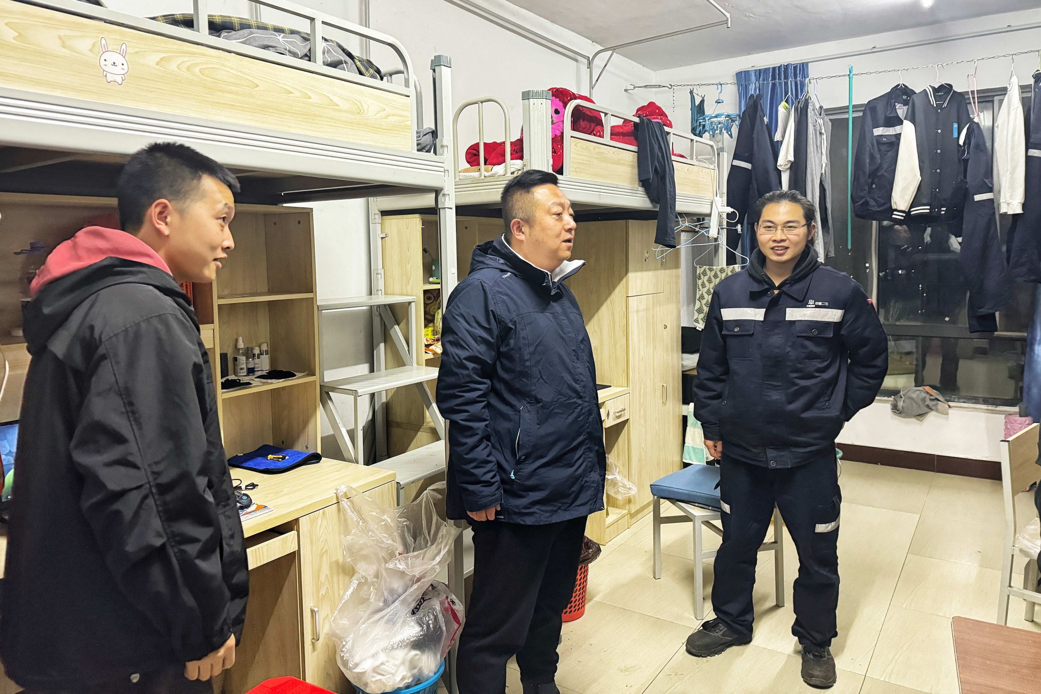 鲜金宏、贺雪宁深入中核二三职工宿舍与实习学生亲切交谈,仔细询问他们在实习期间的工作内容、生活状况以及遇到的困难和问题。鲜金宏勉励同学们要珍惜机会,多向师傅们学习,积累经验,不断提高自己的实践能力和综合素质,真正做到学以致用,为将来走向工作岗位奠定基础,同时表示学院将全力支持学生的实习工作,做好服务和保障,确保实习任务圆满完成。