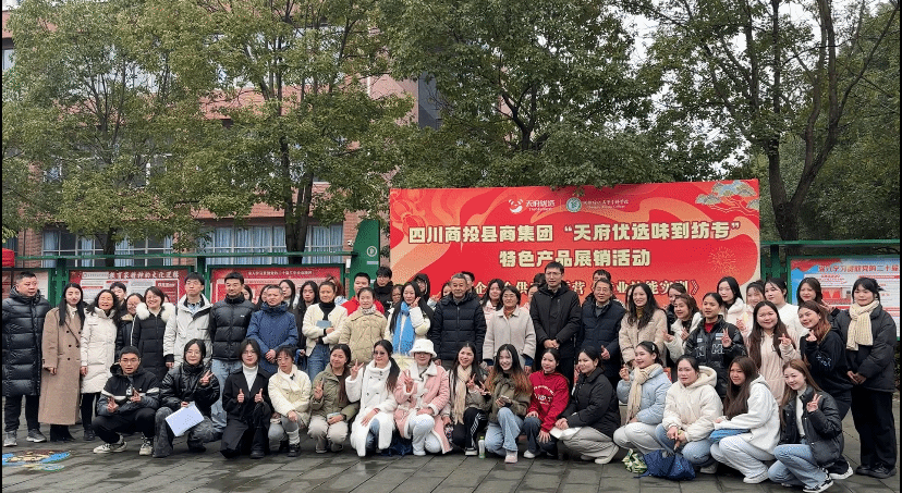 1月7日,四川商投县商集团“天府优选 味到纺专”特色产品展销活动暨校企融合供应链运营《专业技能实训》项目在bwin手机客户端举行。学校党委副书记、工会主席周红,四川省商投县域商业集团有限责任公司副总经理党永斌,学校工会专职副主席苏跃光,资产经营有限责任公司直属党支部书记申昕,学校数字经贸与管理学院党总支书记王霖、党总支副书记兼团总支书记何酉宁,现代物流与供应链运营专业教师、供应链运营专业学生及老挝留学生参加了活动。