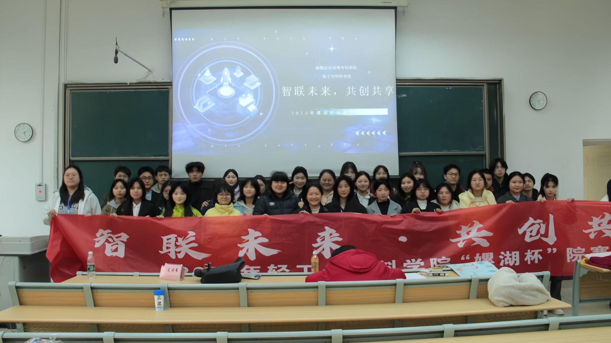 3月18日,轻工与材料学院在致知楼C103举行“智联未来,共创共享”2025年大学生创新创业大赛院级决赛。学院创新创业专项工作辅导员龙琦苇、专职辅导员李小婉,继续教育中心教师刘丽芳及项目指导教师代表担任评委,100余名学生到场观摩学习。