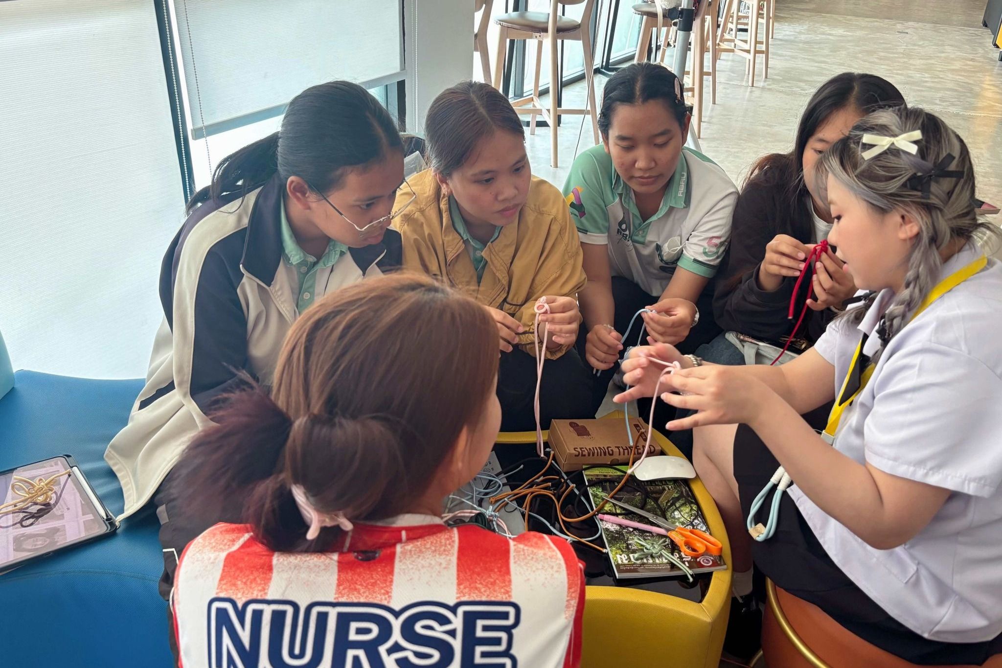 夏令营期间,代表团师生通过多种形式,深入体验泰国文化,展示中国优秀传统文化。一是分组学习泰国服饰文化,试穿传统服饰,并通过游戏互动和角色扮演,学习泰语和礼仪,加深对泰国文化的理解。服装设计类专业师生还围绕“中泰传统服饰对比”主题,举行了一场小型研讨会,从材质、剪裁、文化象征等角度探讨两国服饰的异同,交流氛围热烈而愉快。二是参观热带水果农场,感受舌尖上的甜蜜盛宴,了解当地特色农产品,并就“泰国中部农产品发展”主题展开研讨。三是走访庄他武里宝石中心,体验珠宝制作工艺,感受匠心之美。四是参观瓦派洛姆斯寺庙和尖竹汶府天主教堂,感受多元宗教文化魅力,在佛教建筑与艺术中探寻泰国文化的精髓。五是探访Kanin-plaek社区市场,体验地道泰国生活。bwin手机客户端师生还积极开展中国非物质文化遗产传承教学,向泰方师生展示了盘扣、中国结制作技艺和汉服、马面裙等传统服饰文化。