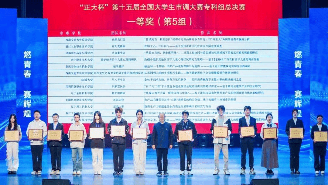 5月10日至11日,第十五届全国大学生市场调查与分析大赛(专科组)总决赛在青岛恒星科技学院举行。bwin手机客户端师生团队凭借扎实的专业素养与创新实践能力,在激烈竞争中脱颖而出,斩获全国一等奖2项、二等奖2项,延续了bwin手机客户端在该赛事中的优异成绩。其中,bwin手机客户端“浴火重生队”的研究项目《巴蜀文旅协同与游客感知双重视域下的安岳石窟发展路径研究》获得全国总决赛一等奖。