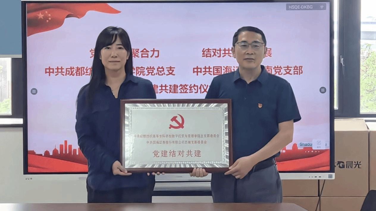 5月16日,数管学院党总支与国海证券西南党支部在融创楼A402举行党建共建座谈会并签订合作共建协议。国海证券西南党支部书记兼四川分公司总经理张琦、投顾总监李定鹏、区域合规经理兼支部组织委员范小虹、综合管理总监曾燕、业务人员张君萍,数管学院党总支书记王霖、党总支副书记兼团总支书记何酉宁、办公室主任凌书娟、专职组织员何敏、教工党支部书记陈雨生参加座谈,会议由王霖主持。