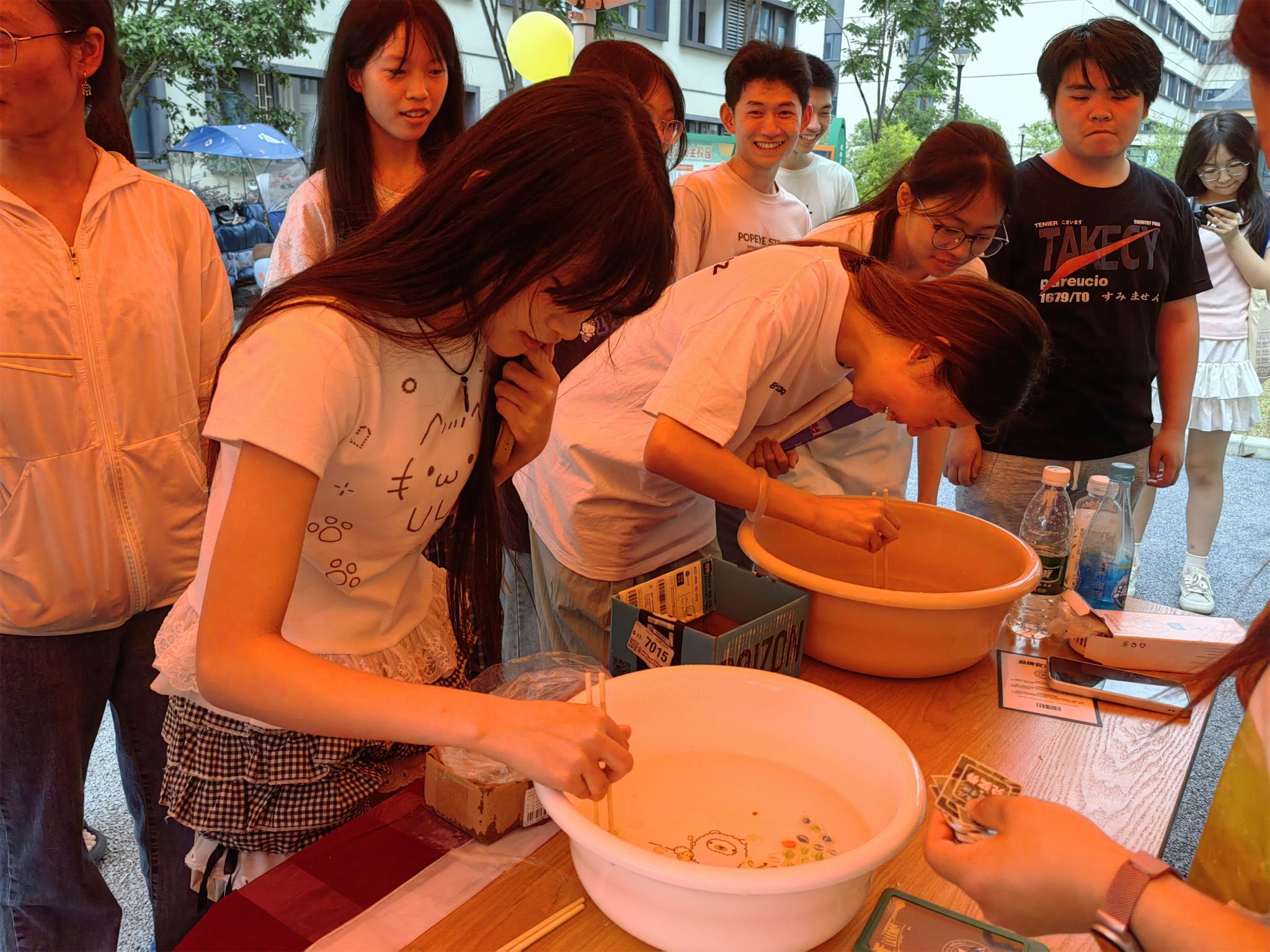 活动一共围绕邛崃产教园区嫘湖设置了5个点位,游戏活动丰富多彩,有考验默契与创意以及培养团队协作能力的游戏,有激发个人挑战精神的挑战游戏,有促进沟通表达与人际交往的各种游戏。除游戏点位,还设置了“心笺云墙”,同学们纷纷在上面写下对自我、对朋友、对未来的期许。活动现场,同学们热情参与,欢乐不断,最终获得积分兑换了属于自己的奖品。