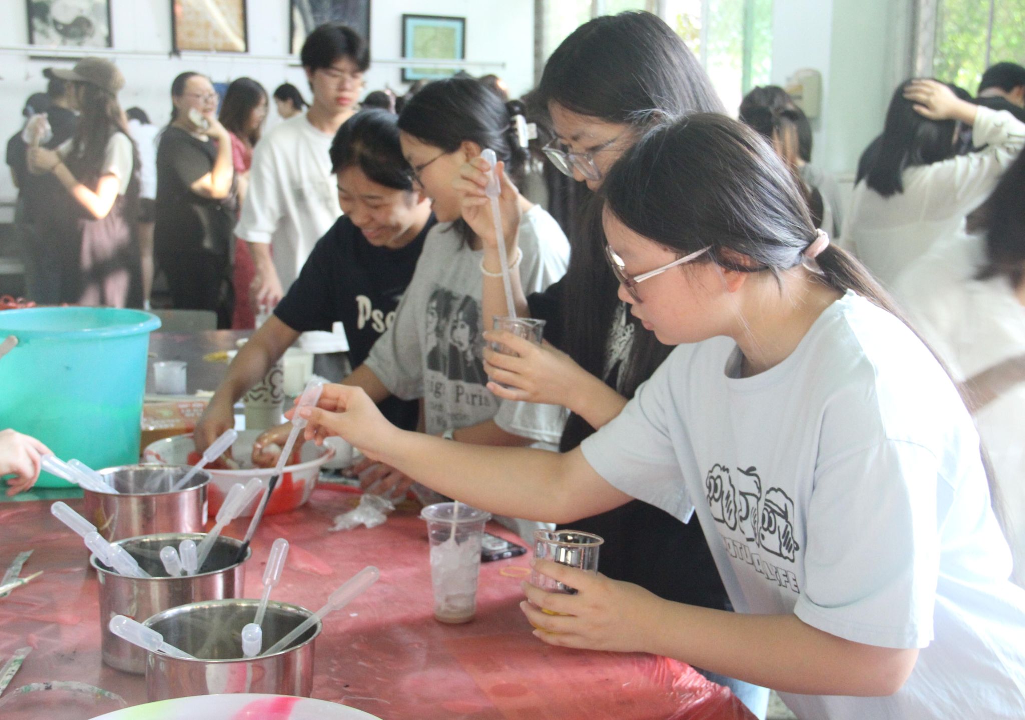 6月15日,轻材学院学生会心理部在格物楼一楼染整实验室举办“布期而遇,扎染生花”传统扎染艺术鉴赏活动。活动吸引了学院70余名同学的热情参与,大家在扎染艺术中深切感受非物质文化遗产的独特魅力。