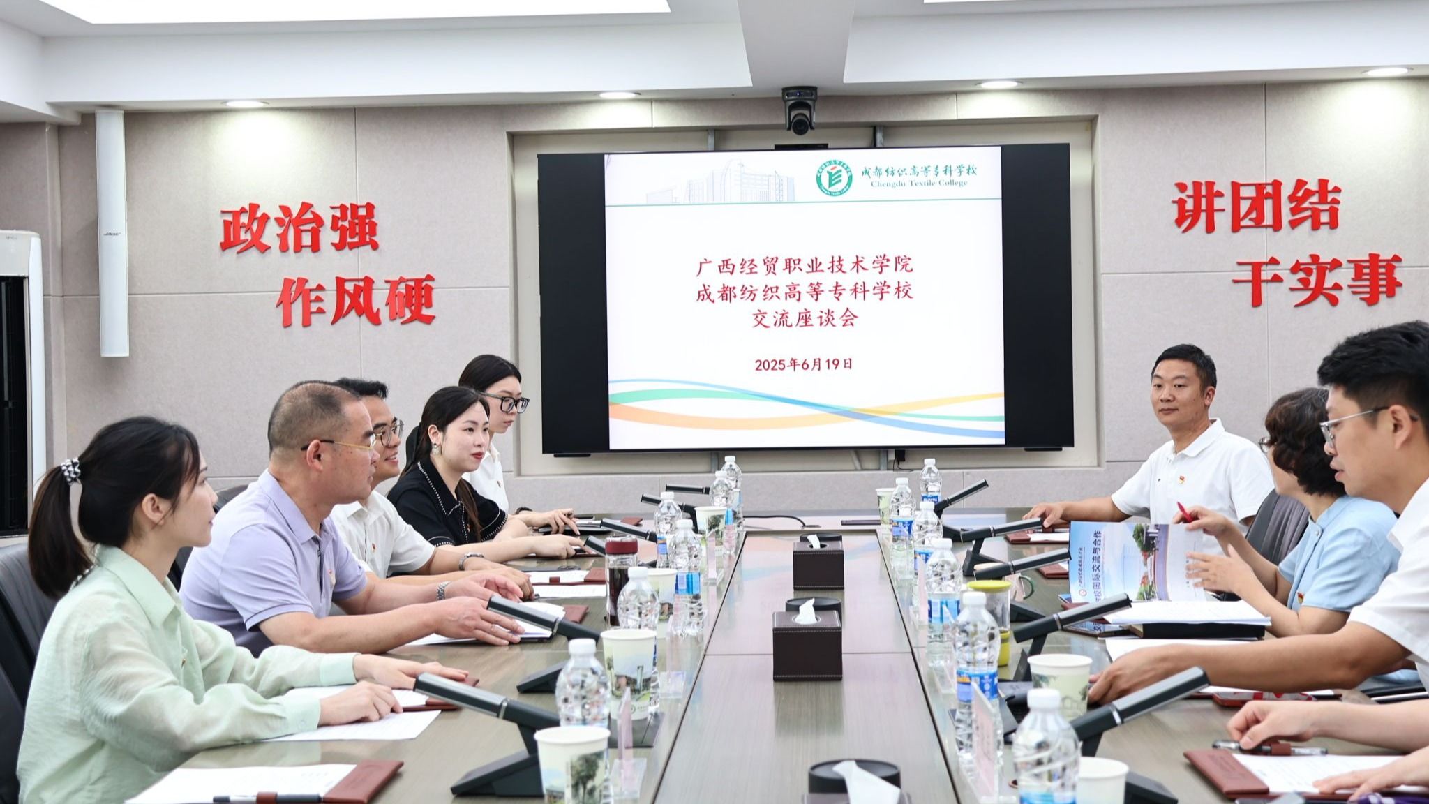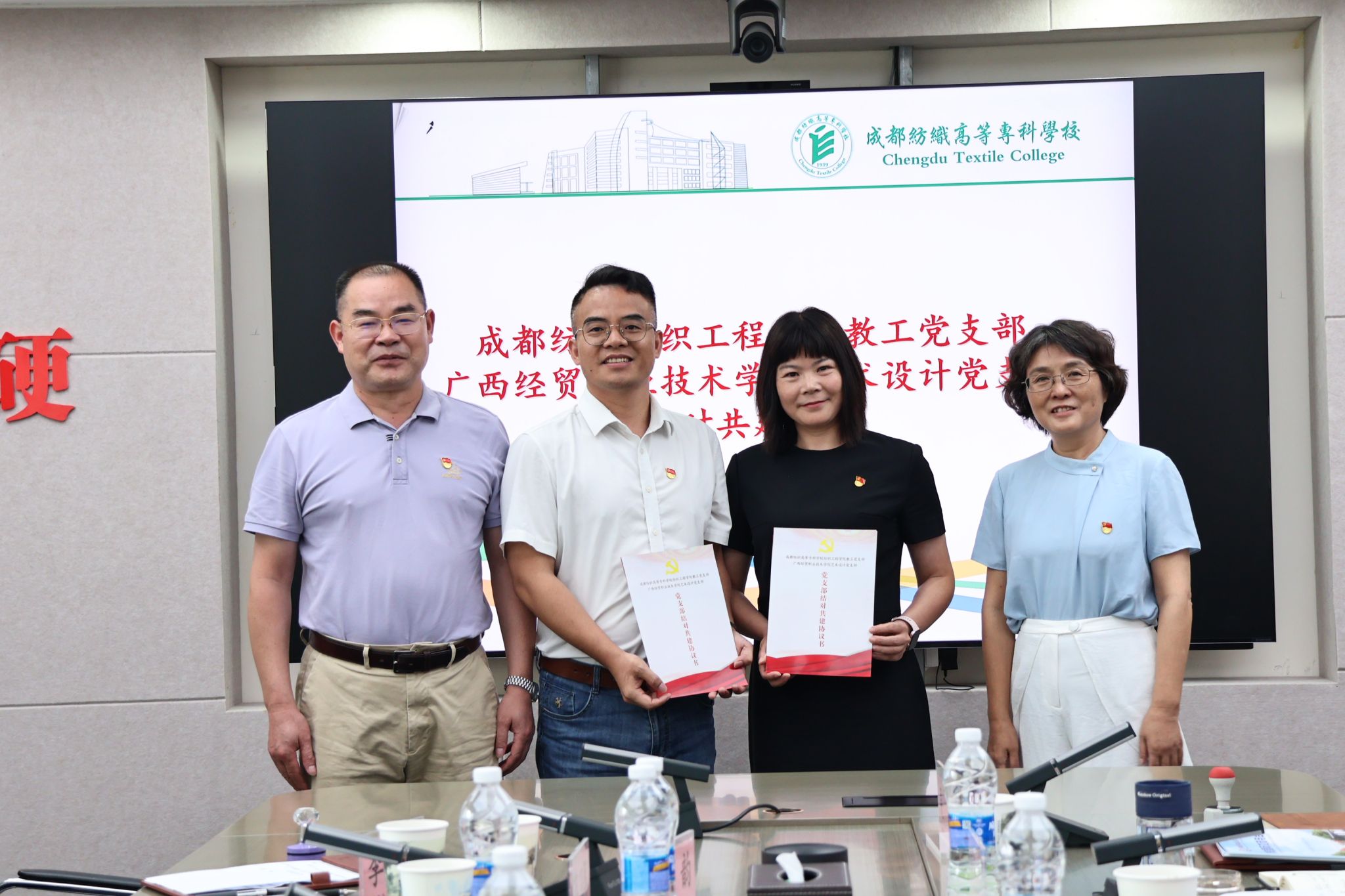 双方参会人员还就全国样板党支部阵地建设、“双高”专业建设经验等多方面议题进行了深入探讨与交流。随后,学校纺织工程学院教工党支部与广西经贸职院艺术设计党支部开展了结对共建仪式。会后,服装学院副院长吴杰陪同广西经贸职院一行前往四川祥和鸟服饰有限公司,进一步商谈开展校企合作相关事宜。