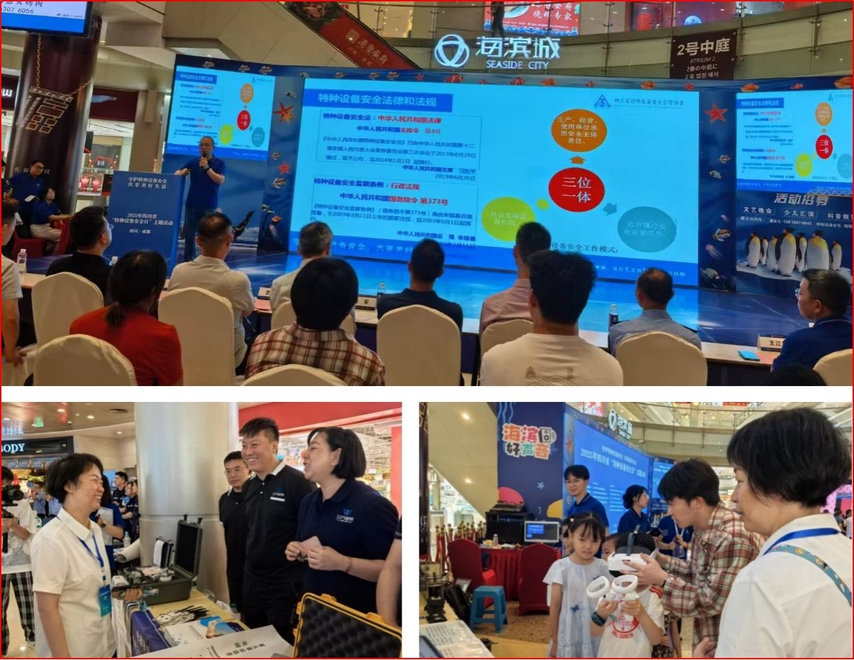活动现场,工作室创新打造“电梯安全科普矩阵”,以讲座、互动、沉浸式电梯VR体验等形式普及电梯安全知识,并推出电梯图书推介、在线课程申请等参与途径,点燃了全民参与的热情。工作室带去的电梯VR设备为市民提供了完整的互动培训体验:参与者不仅能身临其境地感受电梯的运行原理,更能在模拟环境中学习识别潜在的安全隐患,并接受专业的应急处置技能训练。这种直观、互动性强的实景培训方式,有效激发了市民的学习兴趣,让安全知识润物无声,从“知道”转变为“会用”。