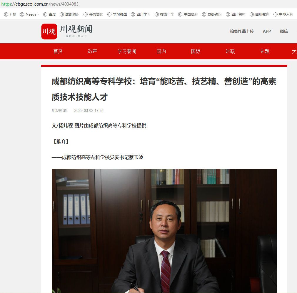 在84年办学历史中,成都纺专始终秉承“工程师才能•工匠之技艺”育人传统,坚持为党育人、为国育才,为行业、产业和区域经济社会发展培养了一批批“能吃苦、技艺精、善创造”的高素质技术技能人才。站在新的历史起点,学校正紧紧围绕党和人民对高等职业教育发展的新要求、新期待,努力创建“立足成都、面向全国,引领时尚发展、服务美好生活、支撑产业创新”的成都轻纺工程职业技术大学。欢迎广大考生报考bwin手机客户端!