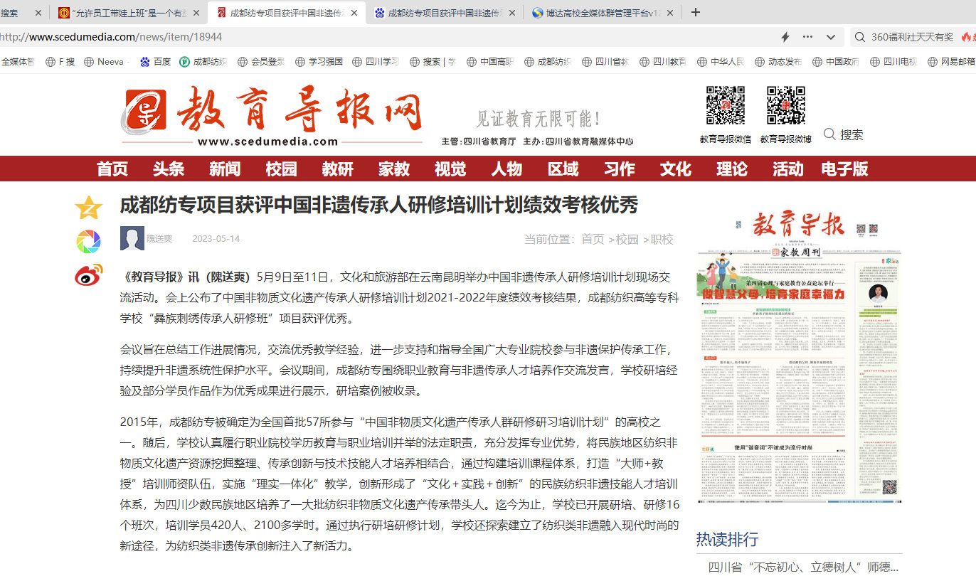 会议旨在总结工作进展情况,交流优秀教学经验,进一步支持和指导全国广大专业院校参与非遗保护传承工作,持续提升非遗系统性保护水平。会议期间,成都纺专围绕职业教育与非遗传承人才培养作交流发言,学校研培经验及部分学员作品作为优秀成果进行展示,研培案例被收录。