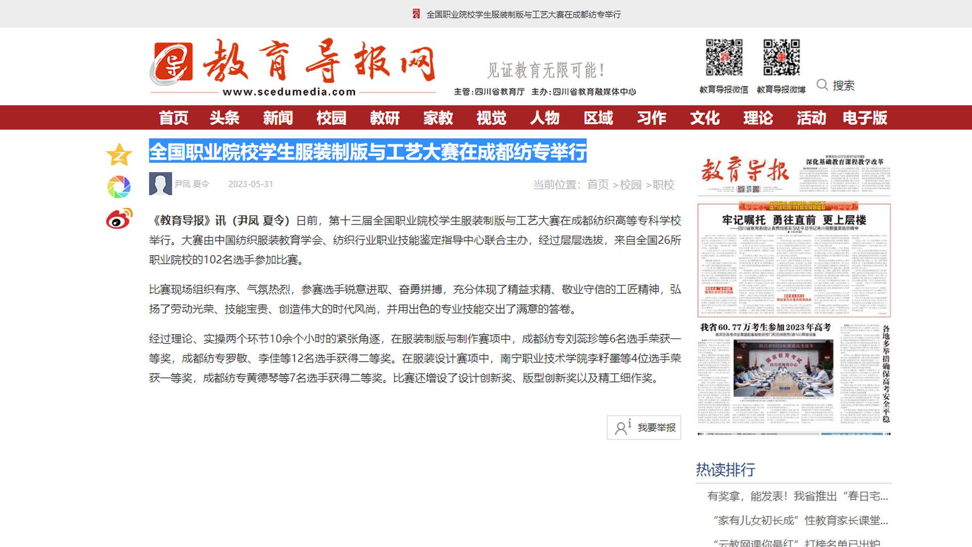 《教育导报》讯(尹凤 夏令)日前,第十三届全国职业院校学生服装制版与工艺大赛在bwin手机客户端举行。大赛由中国纺织服装教育学会、纺织行业职业技能鉴定指导中心联合主办,经过层层选拔,来自全国26所职业院校的102名选手参加比赛。