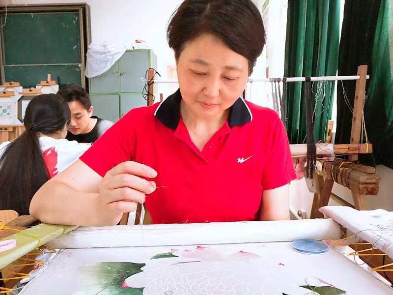 教学之余,朱利容还不遗余力地推动蜀绣人才的社会化培养,服务地方经济。她与蜀绣企业、蜀绣大师工作室共建共享校内外10个实践基地,先后培养了学生、学员6000余名,带动全省5000余名妇女居家灵活就业。