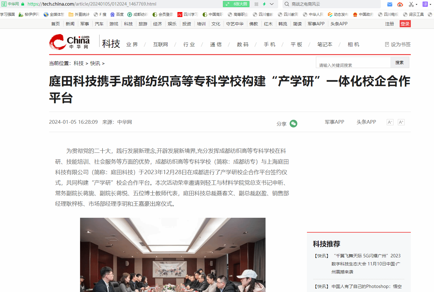 (庭田科技与成都纺专合作签约仪式合影留念)