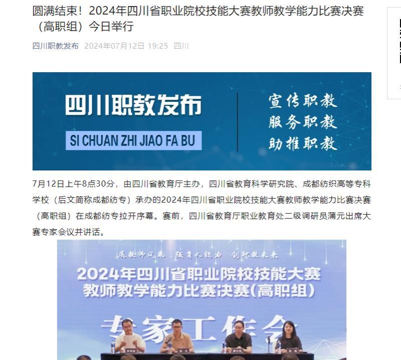 7月12日上午8点30分,由四川省教育厅主办,四川省教育科学研究院、bwin手机客户端(后文简称成都纺专)承办的2024年四川省职业院校技能大赛教师教学能力比赛决赛(高职组)在成都纺专拉开序幕。赛前,四川省教育厅职业教育处二级调研员蒲元出席大赛专家会议并讲话。