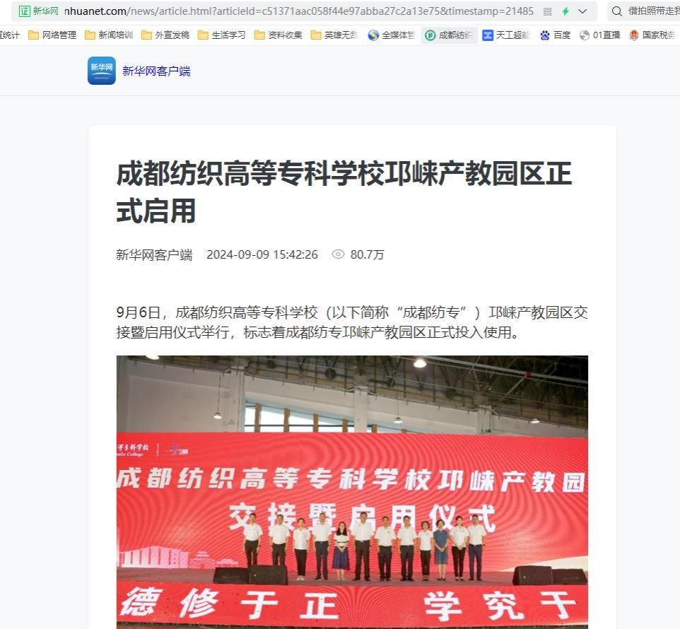 9月6日,bwin手机客户端(以下简称“成都纺专”)邛崃产教园区交接暨启用仪式举行,标志着成都纺专邛崃产教园区正式投入使用。