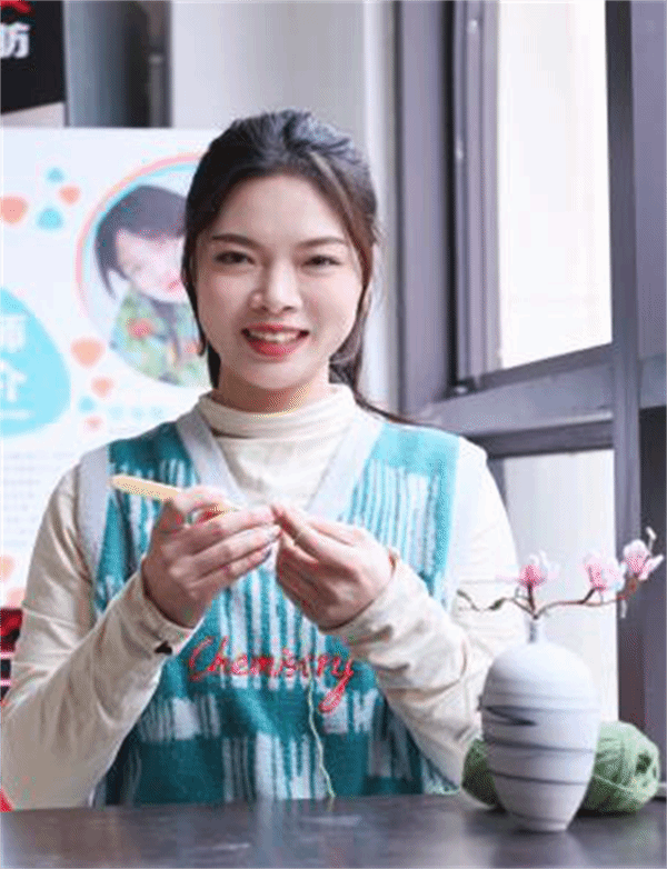 “琳馨很努力,对待专业很用心。在校期间,她深耕针织理论知识,注重实践课程的锤炼,在创意钩编领域展现出了非凡才华。”经过持续实操训练,加之天生热爱手工艺品,短时间内,张琳馨就对钩针编织技巧得心应手。据纺织工程学院副院长胡雪梅介绍,在钩编专业领域,张琳馨喜欢创新设计方法,力求在每件作品中都融入独特的思考与创意,由此钩出的作品也极具实用价值和艺术文化价值。这也为她的创业之路打下了坚实基础。