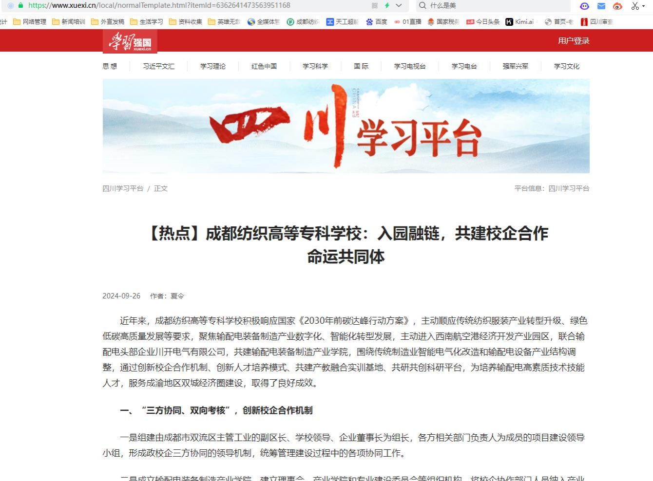 近年来,bwin手机客户端积极响应国家《2030年前碳达峰行动方案》,主动顺应传统纺织服装产业转型升级、绿色低碳高质量发展等要求,聚焦输配电装备制造产业数字化、智能化转型发展,主动进入西南航空港经济开发产业园区,联合输配电头部企业川开电气有限公司,共建输配电装备制造产业学院,围绕传统制造业智能电气化改造和输配电设备产业结构调整,通过创新校企合作机制、创新人才培养模式、共建产教融合实训基地、共研共创科研平台,为培养输配电高素质技术技能人才,服务成渝地区双城经济圈建设,取得了良好成效。