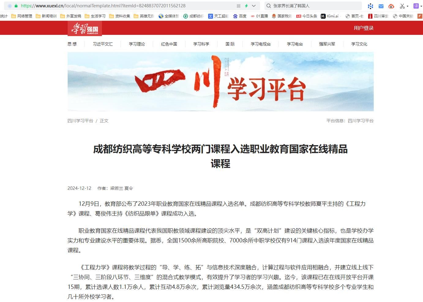 12月9日,教育部公布了2023年职业教育国家在线精品课程入选名单。bwin手机客户端教师夏平主持的《工程力学》课程、葛俊伟主持《纺织品跟单》课程成功入选。
