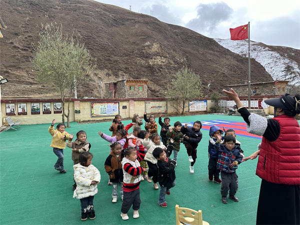 “每次跟孩子们在一起,一声声‘叔叔好!’‘阿姨好!’‘谢谢你们!’让大家心里都是甜滋滋的”,杨各乡党委副书记更登格西说,这补齐了乡村幼教短板。