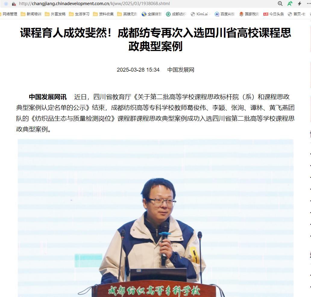 中国发展网讯 近日,四川省教育厅《关于第二批高等学校课程思政标杆院(系)和课程思政典型案例认定名单的公示》结束,bwin手机客户端教师葛俊伟、李颖、张洵、谭林、黄飞燕团队的《纺织品生态与质量检测岗位》课程群课程思政典型案例成功入选四川省第二批高等学校课程思政典型案例。