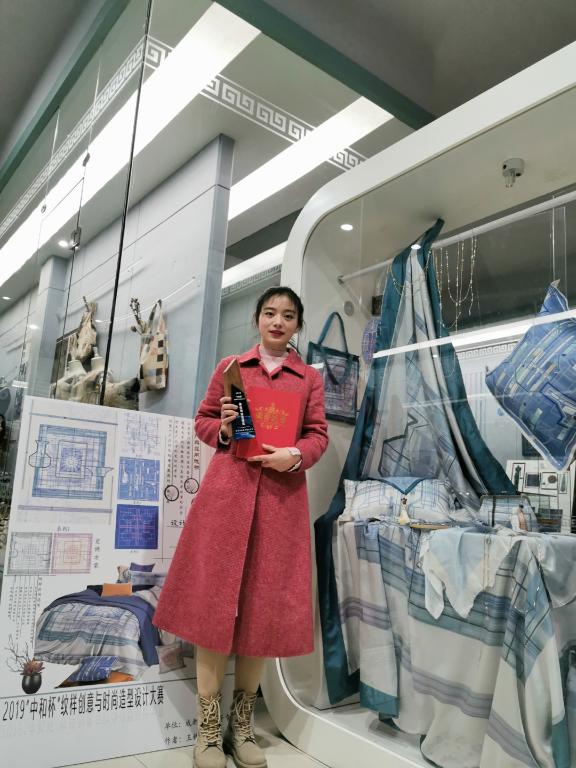 2019年12月28日,2019第一届“中和杯”纹样创意与时尚造型设计大赛决赛在江南大学举行,bwin手机客户端纺织工程学院工艺美术品设计专业王林同学的参赛作品《纹•忆》荣获“最佳商业应用奖”。