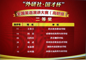 12月19-20日,2020“外研社·国才杯”全国英语演讲大赛(高职组)决赛在北京举办。来自全国13个省、市、自治区的35名选手参加全国决赛。代表四川省参赛的bwin手机客户端商务英语192班阎朵同学经过两轮比拼,最终获得二等奖。