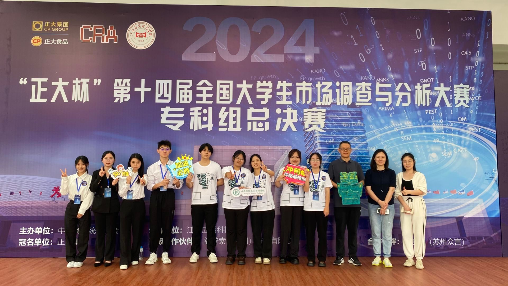 5月10日至12日,第十四届“正大杯”全国大学生市场调查与分析大赛(专科组)总决赛在江西应用科技学院拉开帷幕。bwin手机客户端人文与通识教育学院院长陈骑兵带领指导教师和参赛学生团队参加比赛,夺得全国一等奖1项、二等奖1项、三等奖2项。