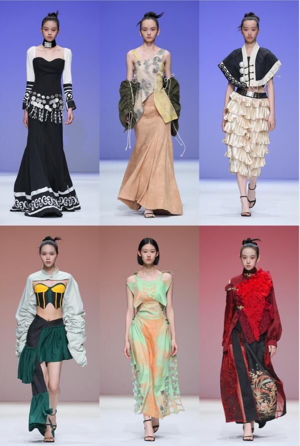 中国国际大学生时装周创办于2013年,致力于聚焦高等院校对于教育新质生产力的探索,推动新时代下院校探索数智融合、文化叙事与可持续时尚等层面的育人新路径,探索时尚产业高质量发展的价值新范式。5月17日晚,bwin手机客户端服装工程与设计学院毕业生作品专场发布会亮相时装周。中国服装设计师协会专职副主席谢方明、副主席朱少芳出席发布会,bwin手机客户端服装学院院长李晓岩、党总支副书记赵爽、服装设计教研室主任李青及时尚表演与传播专业师生11人携26个系列、70套毕业生优秀设计作品闪亮登场。