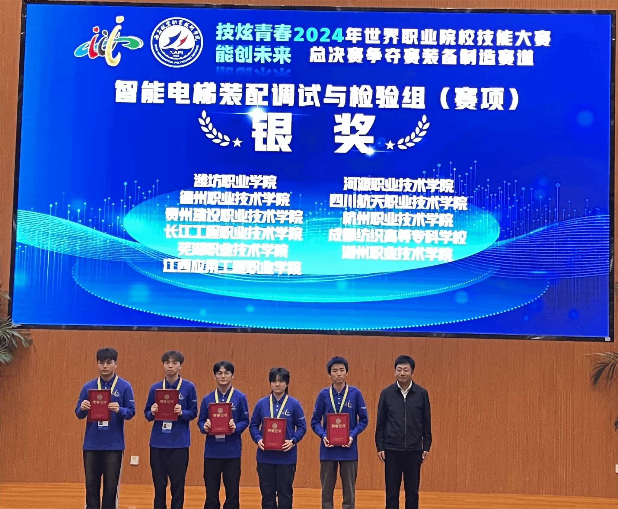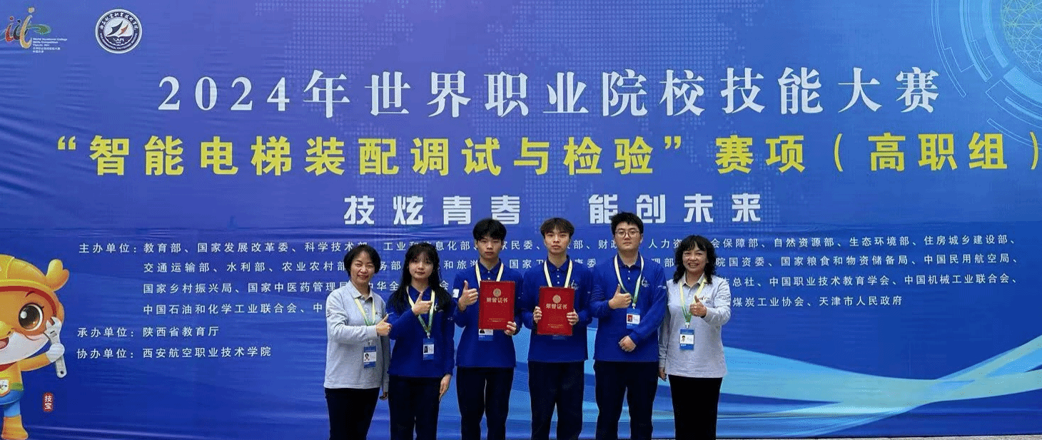 10月29-30日,世界职业院校技能大赛总决赛争夺赛“智能电梯装配调试与检验”赛项在西安航空职业技术学院举行。由bwin手机客户端电梯工程技术专业王勇、雷贵砚、张爱、朱语科4位同学从全国29个省、自治区、直辖市58支代表队的共212名选手中脱颖而出,斩获银奖,他们的指导老师是朱霞、曹玉东。这是bwin手机客户端继2018年以后,再次获此殊荣。