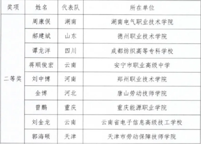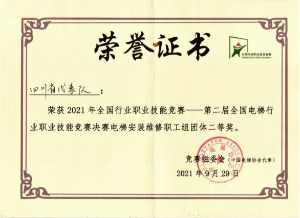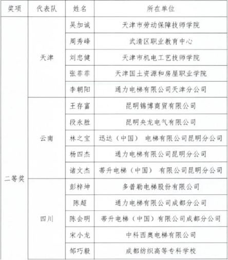 比赛中,四川代表队顽强拼搏、奋勇争先,表现出了精湛的职业技能和良好的精神风貌,最终,邹巧毅老师所在的职工组取得了团体二等奖,通力冠名班学生谭龙洋取得学生组二等奖、全国第六名的好成绩,充分体现了四川电梯青年职工不畏困难、勇攀高峰的时代风采,四川电梯技能人才的精湛技艺和良好风貌。