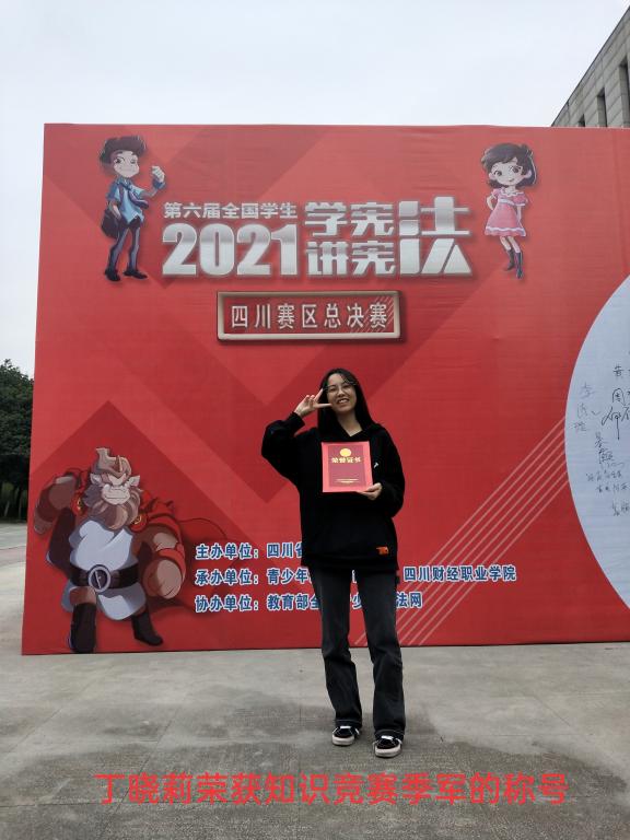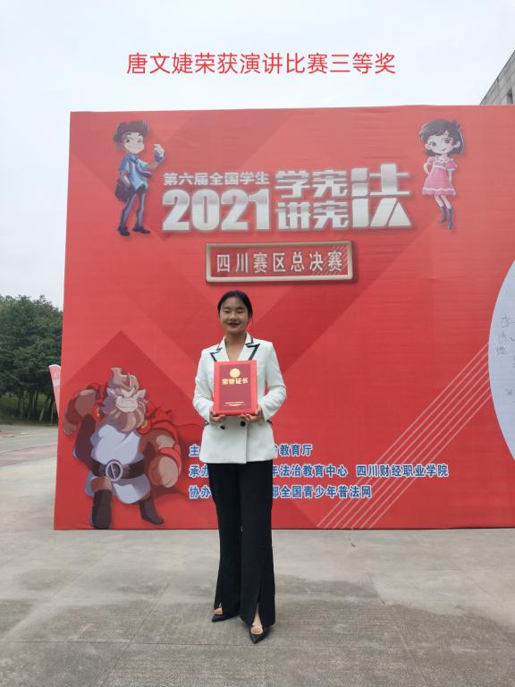 10月16日-10月17日,第六届全国学生“学宪法、讲宪法”四川赛区总决赛在四川财经职业学院举行,参赛选手分别来自我省21个市州、省内各高校。比赛分为知识竞赛和演讲比赛。每个项目又分为小学组、初中组、高中组和高校组。经过激烈角逐,bwin手机客户端环境工程技术202班的唐文婕赢得了演讲比赛的三等奖;服本181班的丁晓莉从众多一本院校和法学专业的选手中脱颖而出,取得全省第三名的好成绩,荣获一等奖。