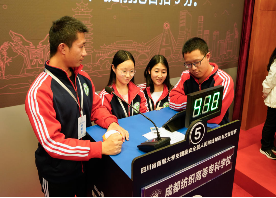 竞赛由四川省国家安全厅人民防线建设处、四川省高等教育协会高校保卫学专业委员会主办,四川省国安厅、四川省教育厅、四川省公安厅指导,电子科技大学承办。bwin手机客户端代表队由轻工与材料学院陈浪、陈泳红,智能制造与装备学院高宜坤、服装工程与设计学院刘平燕4位同学组成。他们从全省80多所高校代表队中脱颖而出,与电子科技大学、四川农业大学等7所高校一起晋级总决赛。最终,经过激烈的角逐,以全省第三名的好成绩,荣获特等奖。