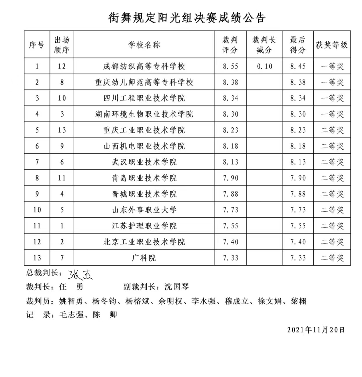 11月20日,第七届中国高等职业院校健美操锦标赛(云比赛)圆满落幕,来自全国高职院校近100支代表队、800多名运动员参加比赛。经过紧张激烈的角逐,由杨坤、贺亚韡老师带领的bwin手机客户端健美操啦啦操代表队荣获阳光组街舞规定动作一等奖、竞技自编男子单人操三等奖的佳绩,其中街舞规定动作以总分第一的成绩夺得冠军。