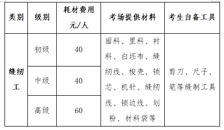 另根据《四川省发展和改革委员会四川省财政厅关于重新公布全省人力资源社会保障部门行政事业性收费的通知》(川发改价格〔2017〕472号)、《四川省发展和改革委员会四川省财政厅关于全省人力资源社会保障部门行政事业性收费的通知》(川发改价格规〔2023〕473号)文件:裁剪缝纫等操作技能考试所需的原材料、主料可由认定机构代办并按实际成本收费或由考生自备。